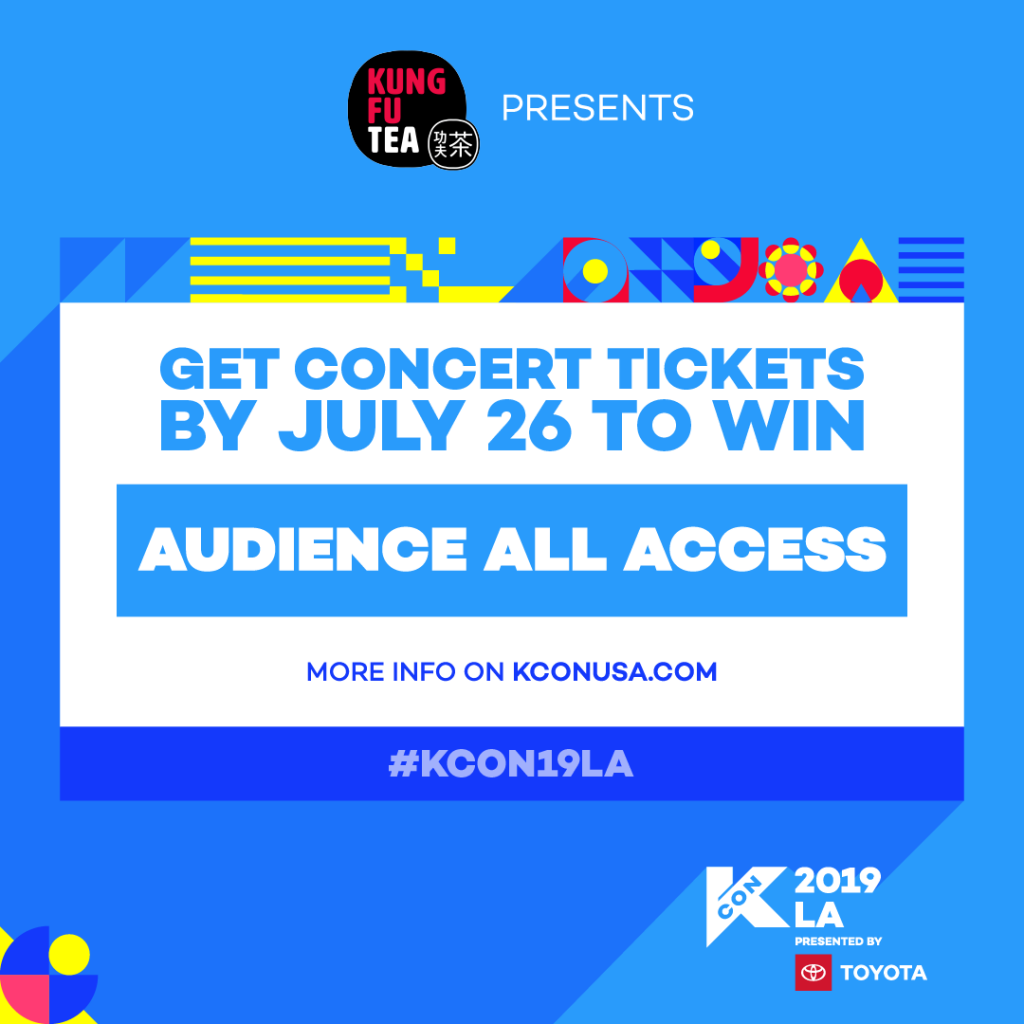 Hi, KCON-ers! We are excited to announce that our presenting sponsor KUNG FU TEA is giving away Audience All Access for #KCON19NY! Interested in how you can enter to win the prizes? It is actually really SIMPLE! Check out the steps below to participate starting NOW! HOW AND WHEN CAN I ENTER THE CONTEST? Get your KCON 2019 NY concert tickets (here) by June 7th (11:59PM EDT). We will be counting all of the tickets that are bought from May 22nd to June 7th. Then please keep a lookout on this post on www.kconusa.com to check the result. WHAT ARE THE PRIZES? The prize is one Audience All-Access for each of the THREE winners!!! HOW WILL THE WINNERS BE SELECTED? We will randomly draw 3 ticket numbers from all concert ticket holders who made the purchase on Ticketmaster from May 22nd to June 7th; the ticket owners will each win an Audience All-Access to all participating artists’ artist engagement sessions. WHEN WILL THE WINNER BE ANNOUNCED? The lucky winners will be announced on www.kconusa.com on June 10th! Follow us on our socials @KCONUSA and stay tuned on our website if you haven’t! So…it is time now! Get your KCON 2019 NY concert tickets by June 7th (11:59PM EDT) and get ready to win Audience All-Access! We cannot wait to see your there at #KCON19NY! *Artist engagement schedule will be determined based on artists’ availability and announced later. **See official rules of the contest here. Winners’ List: 7/6 Sec 107 Row 5 Seat 5 7/7 Sec 103 Row 9 Seat 14 7/7 Sec 120 Row 11 Seat 6