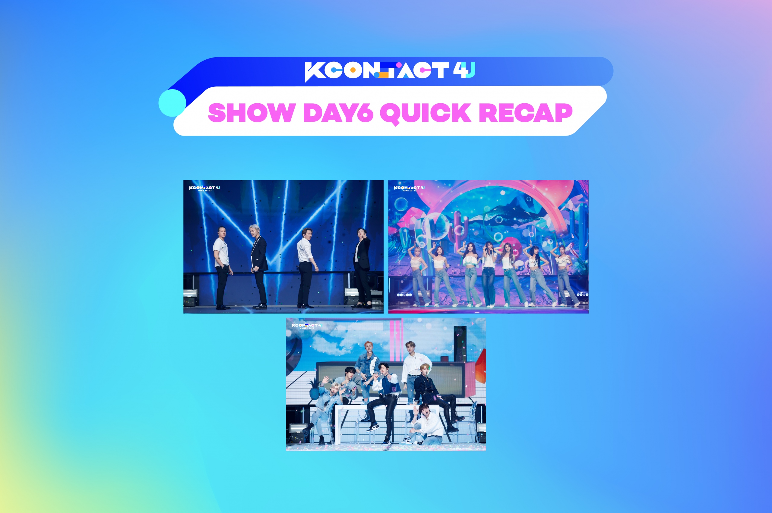 Hello and good morning KCON-ers! The sixth day of KCON:TACT 4U featured ITZY, PENTAGON, VERIVERY, and WEKIMEKI. Did you guys enjoy the show? We’ll be back tomorrow at 5 a.m. PDT/ 8 a.m. EDT with CNBLUE, EVERGLOW, Golden Child, JO1, and ONF. The official replay of today’s event will stream at 6 p.m. PDT/9PM EDT! Once you have your membership, you can watch it on the KCON official YouTube. To get your membership, please head here: http://youtube.com/KCON/join For a complete schedule to KCON:TACT, click the "TIMETABLE" tab here: http://kconofficial.com/ DAY 6 HERE WE GO! ITZY opened DAY 6 with MAFIA In The Morning 💓🔥 Time to 'Get Away' with VERIVERY as they take the 1st stage of DAY 6! VERRER! VERIVERY sends you hearts from the KCON:TACT4U stage! All aboard the Meet & Greet cruise with its first artist ITZY! 💖💖 Guessing the song with just dance moves? ITZY are PROS! DAY 6 of EeumAkSil featured PENTAGON singing Beautiful Goodbye 👋👋 WEKIMEKI is here for their very first KCON:TACT!✨✨ We loved seeing WEKIMEKI with KI-LINGS! 🗝️🗝️ VERIVERY has boarded for their cruise Meet & Greet! 🎉🎉 VERRER slowly reaching the end of the week like: VERIVERY PENTAGON has taken the stage for a special message for Universe! 💙💙 Universe and PENTAGON! Such a beautiful sight to see! 💙⭐ Let's Dance the Night Away with a special stage from VERIVERY! 🌴⛱️ Universe! PENTAGON is here for their Meet & Greet! 🥰🥰 Brunch made by PENTAGON anyone? 😋🥪 The finale of DAY 6, ITZY is here and is Not Shy to show off! ✨✨ MIDZY wants to play Tennis with ITZY! 🎾🎾 OFFICIAL PHOTOS & VIDEO ITZY PENTAGON VERIVERY WEKIMEKI That was an AMAZING show! We hope you guys caught the show live! If you missed out, catch the replay at 6PM PT! We'll see you all again tomorrow! -KCON Staff