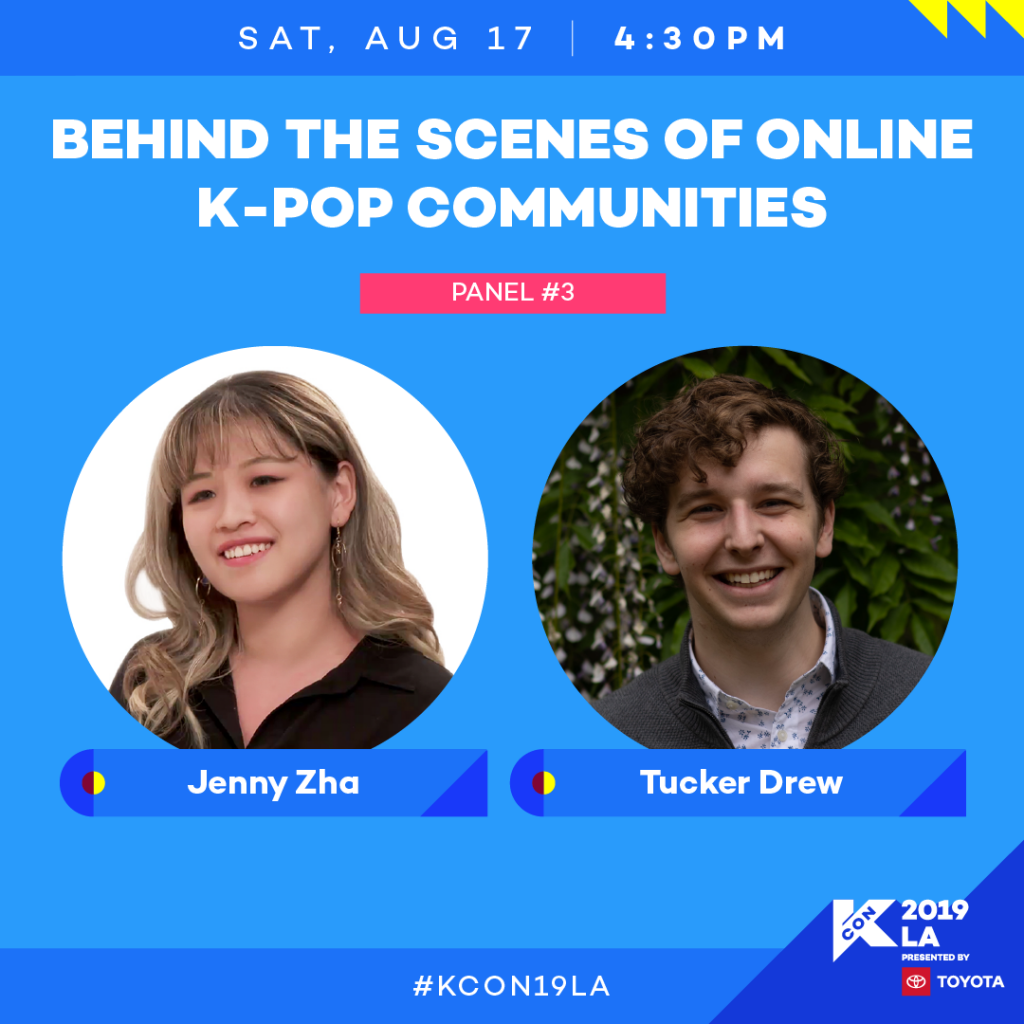 Behind the Scenes of Online K-Pop Communities Jenny Zha, Tucker Drew If you’re a K-Pop fan then you’re definitely familiar with online K-Pop forums and mobile apps! Go behind the scenes with our panelists who have worked and been a part of some of the largest K-Pop communities on the internet!